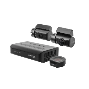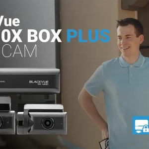 Sistema de cámaras para coche Blackvue DR970X BOX PLUS 4K UHD. Doble cámara (delantera y trasera o interior) y un módulo central o «box» concebido para aumentar la protección de los vídeos evitando accesos indebidos. Cada cámara se conecta a la «box» o caja negra que se instala oculta fuera del alcance de cualquiera.