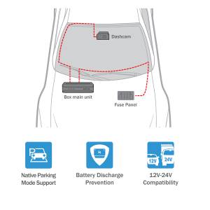 Power Magic PRO integrado: Corte de la alimentación si la tensión de la batería del vehículo cae por debajo del valor configurado. Una vez que el coche se ha parado y la cámara Blackvue se queda en funcionamiento en modo Parking, Power Magic Pro monitorizará el gasto de energía controlando que, por debajo del valor de voltaje configurado, la cámara se desconecte a fin de no gastar la batería del coche.