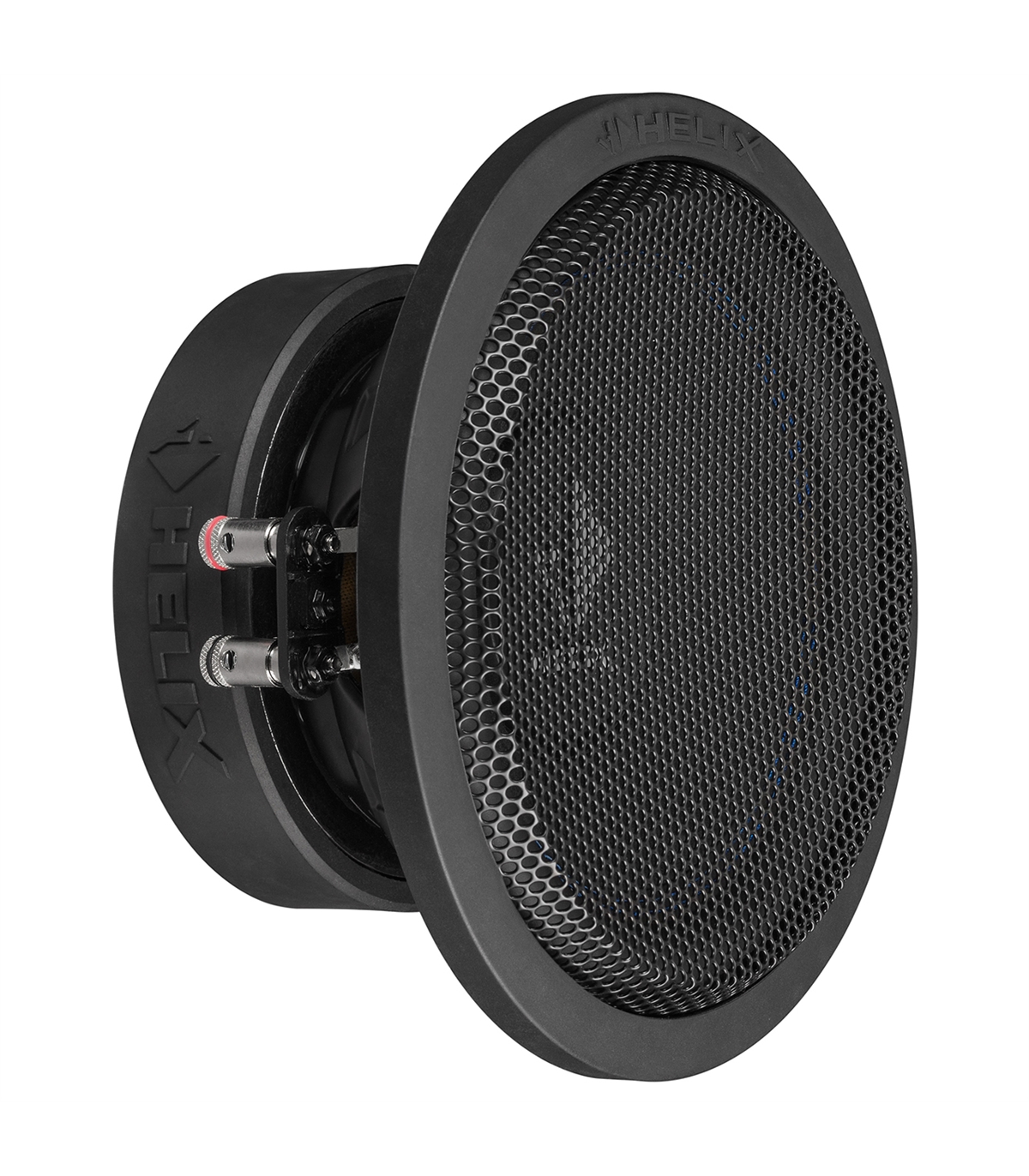 Protección del sistema magnético de goma con logotipo Helix incrustado La suspensión de goma permite la máxima excursión del cono Bobinas duales de 2 x 2 ohmios para flexibilidad en la configuración del sistema