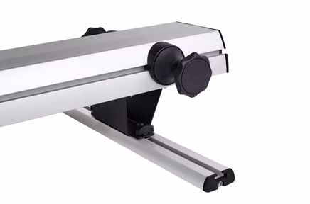 Ocupa poco espacio cuando no se utiliza: el soporte se desplaza (sin bicicletas) hacia el lateral o se desmonta completamente para dejar solo los raíles de montaje en el suelo.